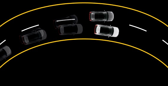 Система адаптивного круиз-контроля поддерживает установленную скорость движения и заранее установленную дистанцию между Вашим автомобилем и автомобилем спереди, автоматически замедляя Ваш автомобиль, если дистанция до впереди идущего автомобиля сокращается более установленных пределов.